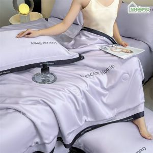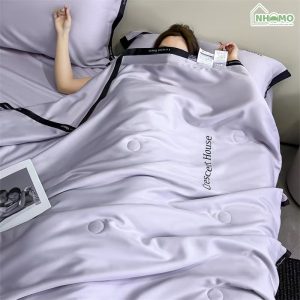 Mang vẻ đẹp sang trọng mà không cần cầu kỳ, bộ chăn hè phi lụa này là lựa chọn lý tưởng cho những ai yêu thích sự tinh tế và tối giản. Chất liệu phi lụa mềm mịn, bóng nhẹ, mỏng nhẹ dễ chịu – rất thích hợp dùng trong mùa hè hay các phòng có máy lạnh.