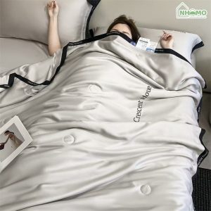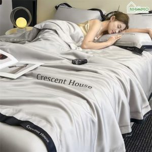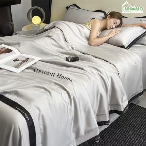 Chăn hè phi lụa thêu chữ – Phong cách hiện đại Minimal