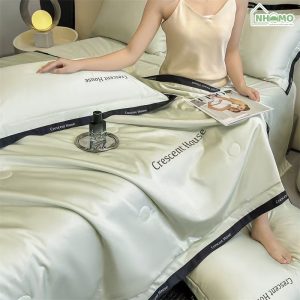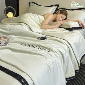 • Thiết kế: Thêu tên thương hiệu “Crescent House” trên chăn và gối