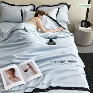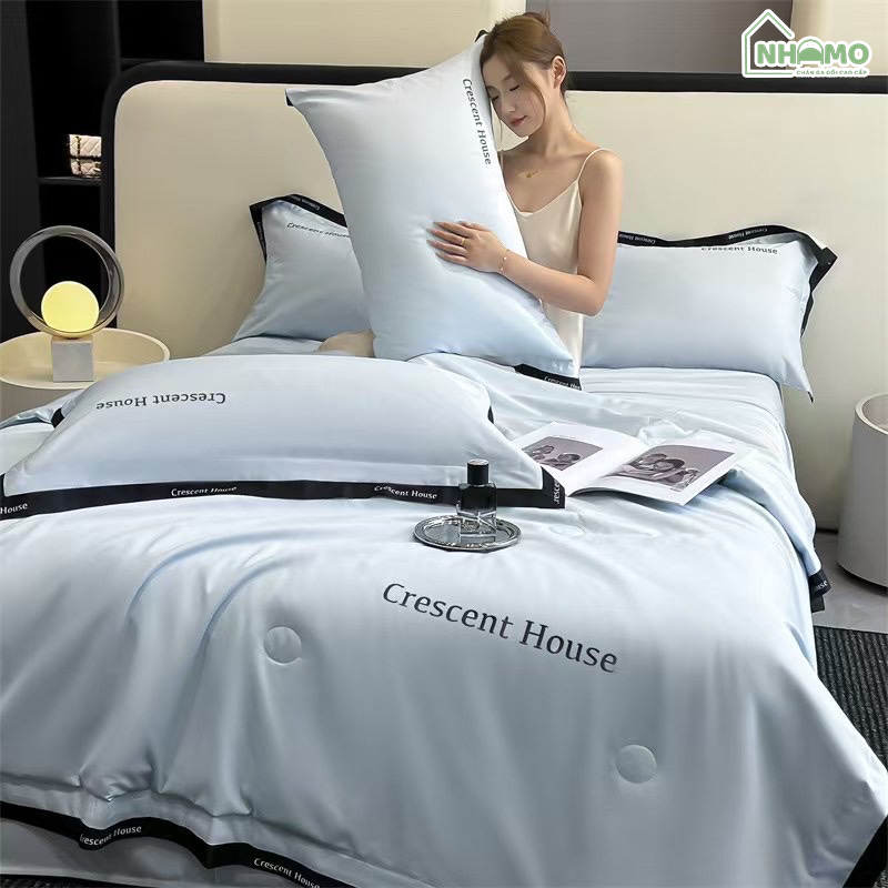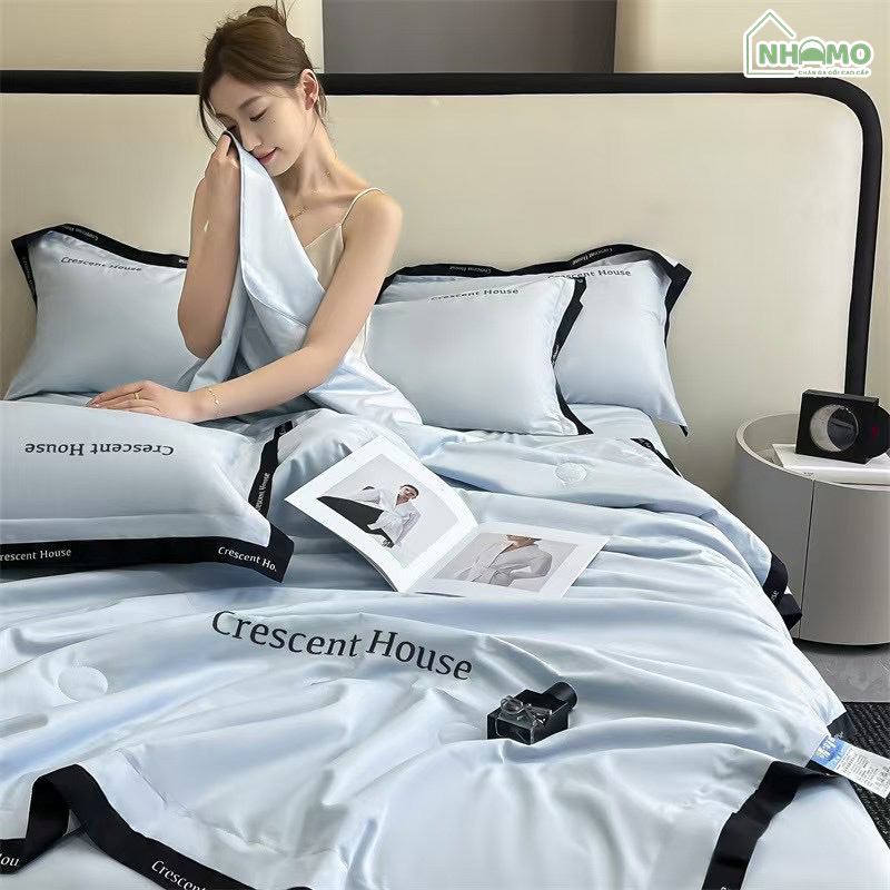 • Thiết kế: Thêu tên thương hiệu “Crescent House” trên chăn và gối