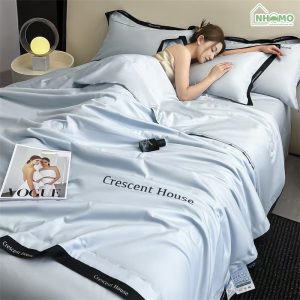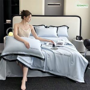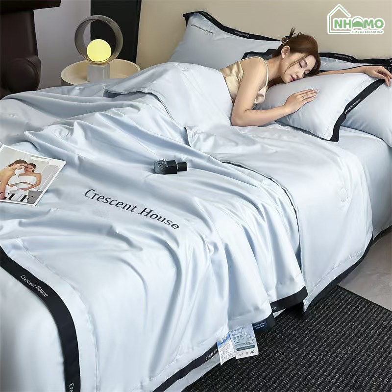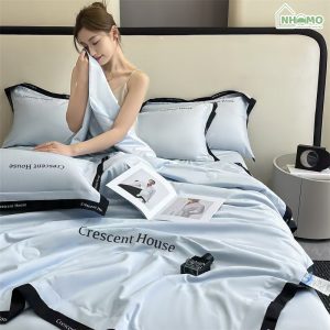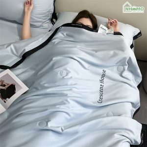 Chăn Hè Phi Lụa Cao Cấp Minimail Xanh Da Trời